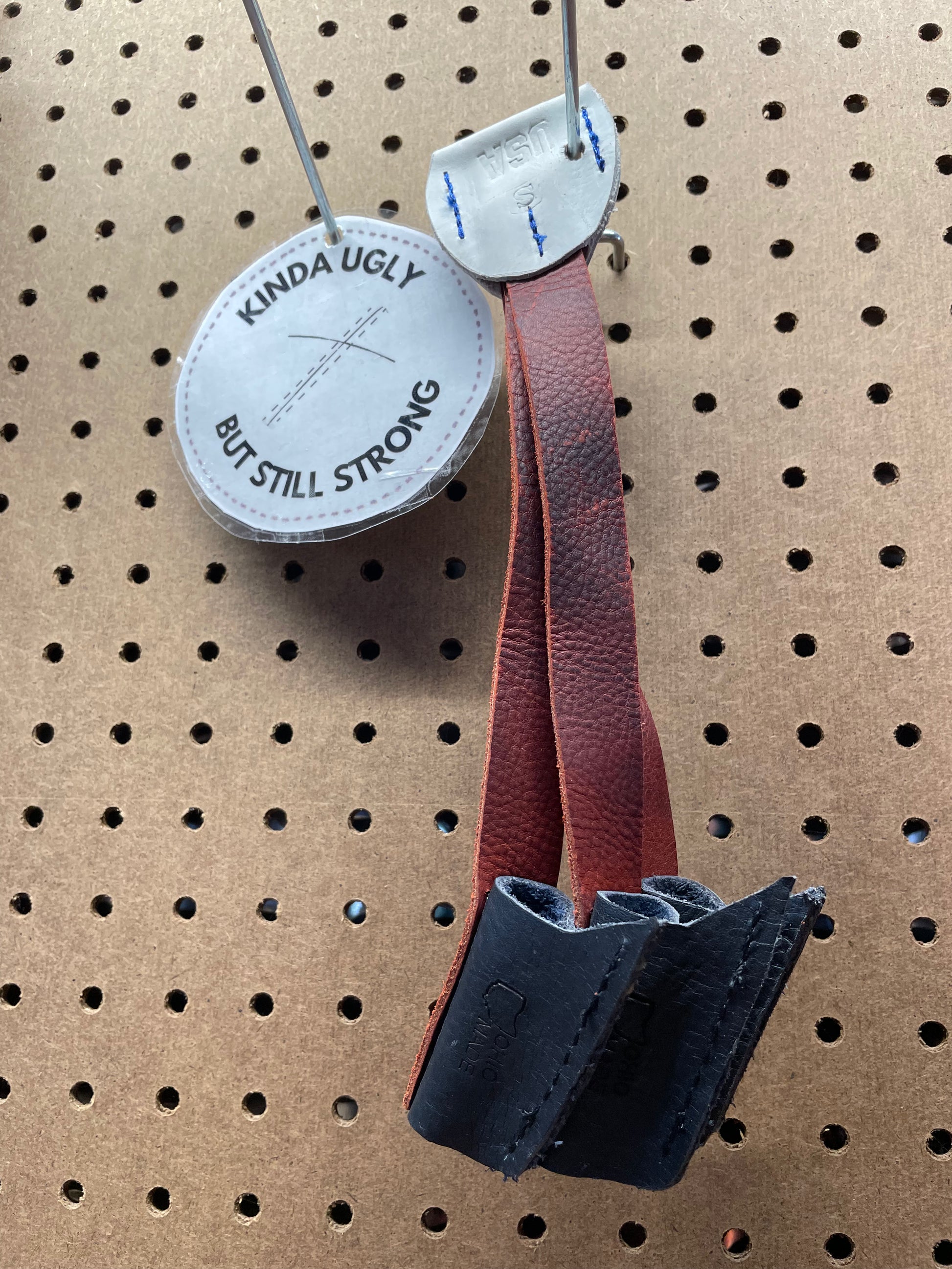 These dragon fingers feature USA stamps that vary and function with our Rodhe Straps (not included) to protect your hand as you toss iron. 2mm navy blue, dark red, and white leather.