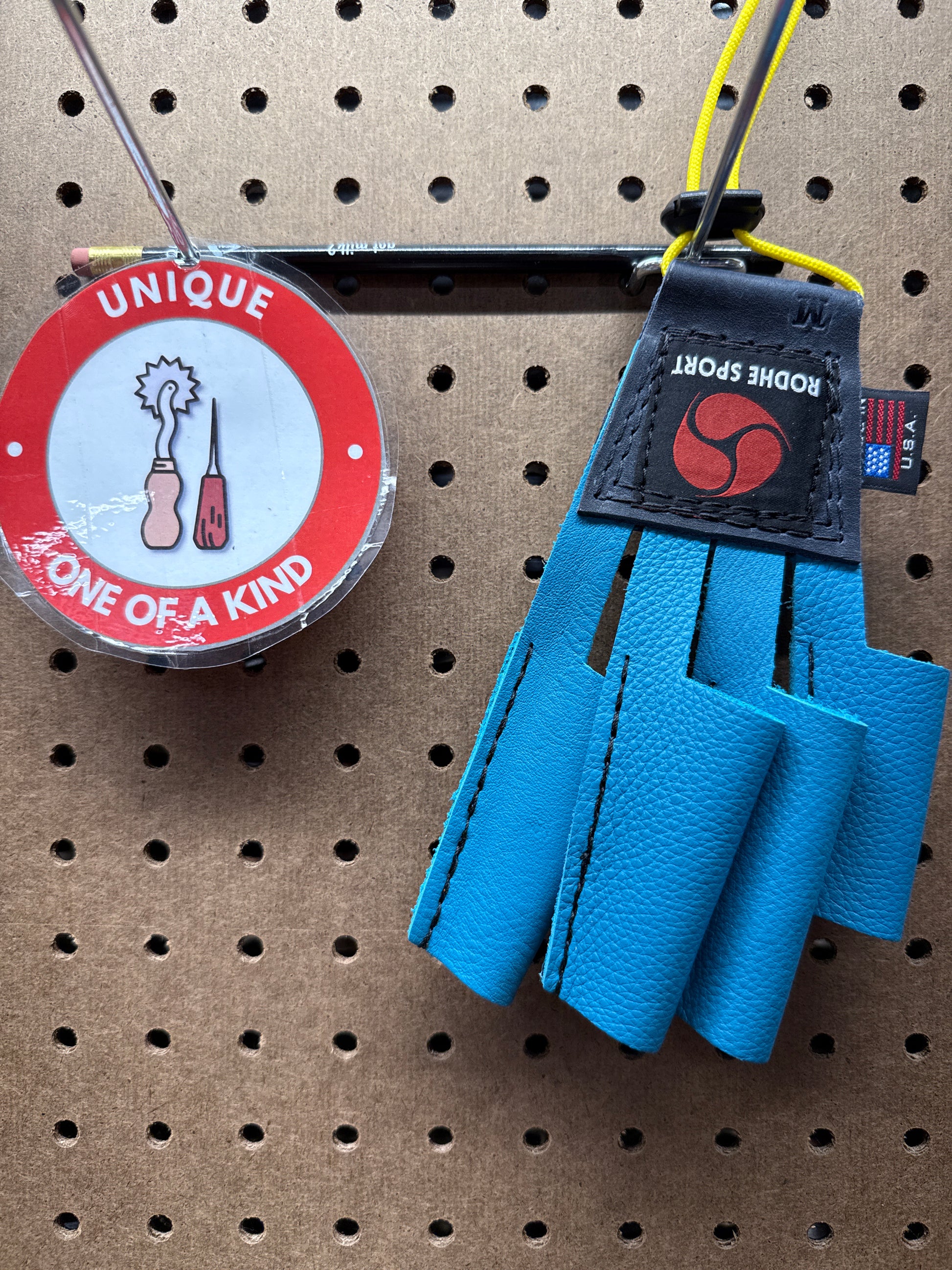2mm teal and 2mm navy blue leather with yellow para cord.