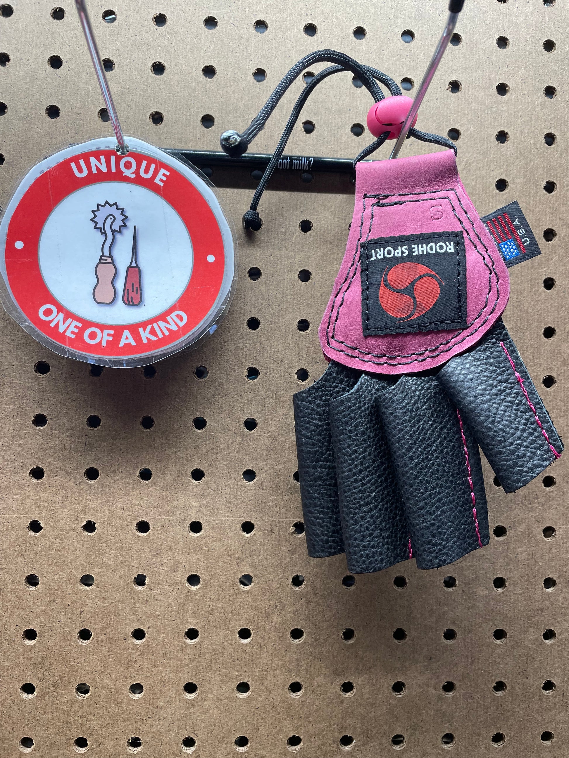 Small Phoenix Hammer Glove worn on left hand. Limited edition Pink Collection! This color is a more classic, rose pink.